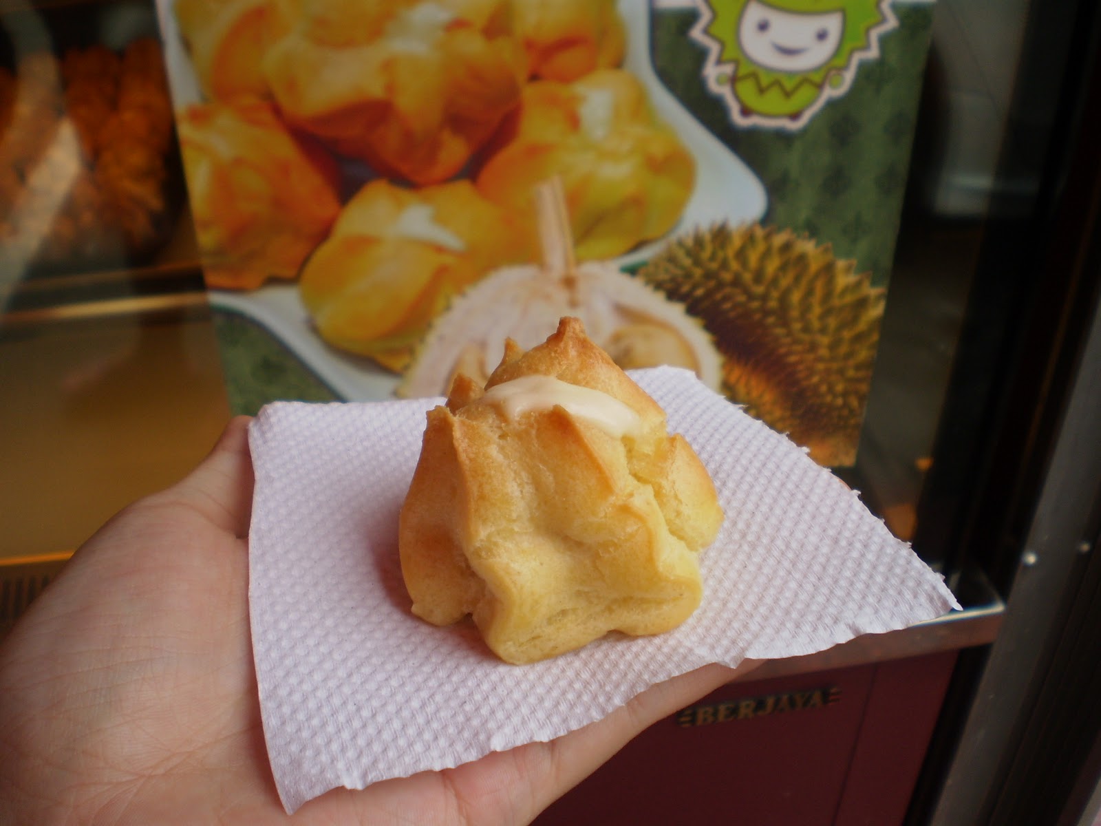 走完了蝴蝶公园(忘了说一些插曲,我要跟猴子拍照,哪知道它竟然伸手出来要抓我头发,真吓人呐)我们去了土产店买东西(我没有买),大家提着大包小包吵着要吃午餐了,所以爱玲雪玲带着“诗美美食组”去吃Asam Laksa,为了留肚子吃别的美食,我和诗美share share吃一碗Asam Laksa,还蛮不错吃的~吃完了Asam laksa 我 order 了一碗红豆冰,喝得我好饱~“诗美美食组”继续出发,来到一间饼店买“sambar 龙珠饼”,我又不喜欢吃这些,所以就无所事事的在外面等,这时给我看到一个好特别的“东东”--“Durian puff”,基于好奇,我买了一粒来吃,哇~~不得了了,实在太好吃!!浓郁的榴莲味道,第一口咬下去已经忍不住快快吃第二口了(讲的我好想吃),而后大家就去逛精品店了~
